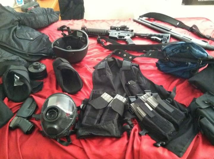 Following his arrest, police discovered he was carrying a first aid box and spike strips in his car. He told the police that he had booby-trapped his apartment with homemade explosive devices. This revelation led to the evacuation of five buildings close to his residence in Aurora.